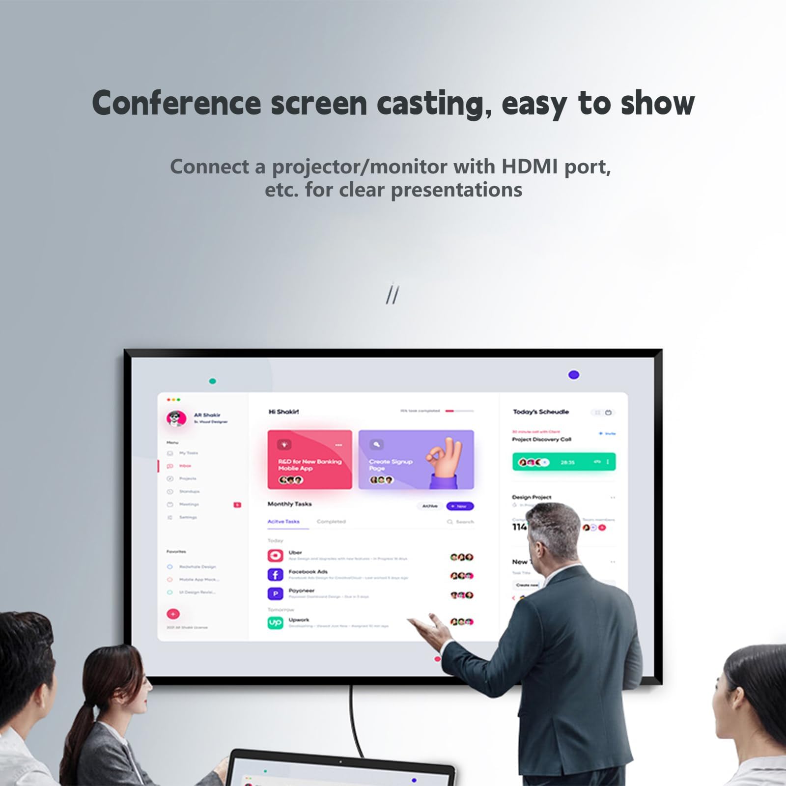 - 【HD Casting】The hub’s HDMI interface supports 4K 30HZ 1080P HD audio and video synchronous transmission, enjoy the audio-visual feast. It can be connected to projectors, monitors and other large-screen devices with HDMI interfaces for quick screen casting to meet the needs of office meetings, family movie watching, large-screen entertainment and other needs.
