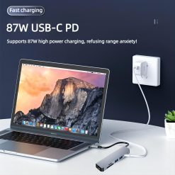 - 【High-speed transfer】The docking station supports USB 3.0 5Gbps, USB2.0 480Mbps high-speed data transfer, USB can be connected to external devices such as hard disk, mouse, etc. SD/TF card slot can be connected to an external SD/TF card, solving the problem of the device does not have a card reader slot. 【Fast Charging】The docking station supports 87W USB-C PD high power charging, which can provide fast power supply for your device without worrying about battery life, in addition to being equipped with a built-in overcurrent and short-circuit protection mechanism without disconnecting the power supply, you can use it while charging to ensure the safety of your device.